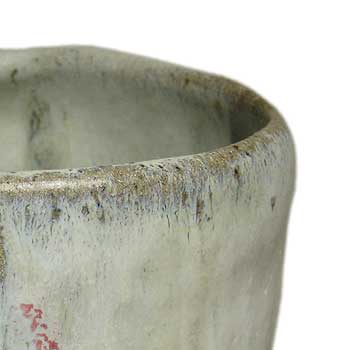 今日ぐい呑は主に酒器と考えられていますが、当時のお酒も飲まれていたと思いますがその生産量の少ない希少価値からいうとべつの物を呑むために作られていたように思われます。当時の焼き物を使うとなると富裕層の人たちが使い、庶民にはなかなか手の届かない物でしたでしょう。その富裕層で流行っていたのが当時の健康補助食品「茶」であったと考えられます。粉茶を飲むのに使っていたのが「茶碗」、葉茶を飲むのに使っていたのが「ぐい呑」だと思います。「ぐい呑」という名前は後の人が付けたのでしょうから当時はなんと言っていたのか解りませんが、「茶碗」は文字通り「茶を飲む碗」でしょうから「ぐい呑」は「小茶碗」とでも言っていたのでしょう。今日の「煎茶碗」はこの同類と思われます。