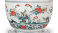 The bottom diameter is 12.8cm. This large tsukkuri has a unique shape with a strongly stretched body. The combination of phoenixes and paulownia on the body is also unique, and was probably a special order item. Although the subject is a flying phoenix with a sharp beak, the composition of the tail ornately spread out to the left and right suggests a sense of commonality with uchikake and other designs from the Kanbun to Genroku periods, and the paulownia patterns of various sizes scattered around the tail are arranged in movement in accordance with the flying phoenix. The purple overglaze painting on the phoenix’s wings, which is rare for Kakiemon-style overglaze paintings, and the addition of gold paint make the painting even more gorgeous. There is a single mark on the base of the vase.