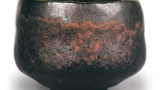 This is a very rare and unique Shino tea bowl. It is a small cylindrical tea bowl with a tight waist, and the surface has been kneaded by hand. The body is decorated with a figure on a bridge on one side and a floral design on the other side, which is also rarely seen on Shino teacups. It was handed down to the Konoike family in Osaka.