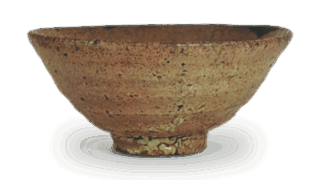 This tea bowl is a very rare example of a Shino tea bowl with a so-called “waritakaidai” (split height stand), of which two others are known. It is clearly modeled after the wari-taka-dai of Koryo tea bowls, and is generally thinly made. The mouth edge is thinly twisted back, and the base is cut in a crosswise pattern to form a wari-takaidai. The glaze is thin and is applied to the entire surface of the bowl, which is also unusual for a Shino tea bowl. The body has a pagoda-like pattern drawn in thin lines. There is a tea bowl called “Iwahashi” which is similar to this one, and there is also a tea bowl with arabesque design on the body with a split height stand, although the style is quite different from this one. It is thought that it was probably made in the early Keicho period.