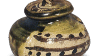 The floral motifs are painted with thick brush strokes. Although the design differs from that of the “Incense container with a fountain pen design,” “Incense container with a butterfly design,” “Incense container with a chrysanthemum design,” etc., the workmanship is similar. These types of incense containers are clearly modeled after Ming dynasty lacquerware such as Chinese lacquerware in the Dui Zhu, Dui Black, and Qing Shei styles.