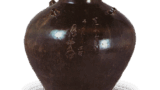 The body of this type of tea jar is slightly narrower than that of a hoshizuki tea caddy, but it has a common shape with a twisted ball-rimmed mouth and a flat bottom.