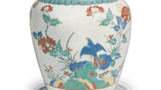 Large works by Ninsei, such as tea pots and water jars, are made of a slightly coarse clay, similar to Shigaraki clay, so that they can be easily ground on a potter’s wheel.