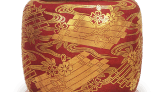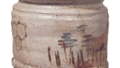 This is also a mizusashi with an arrowhead spout, and the body is decorated with an ashi pattern painted in a spacious brushstroke. The reddish tint around the base is well expressed, and the stately appearance is comparable to that of the Hatakeyama Memorial Museum of Fine Arts’ works. However, the Shino glaze applied to the entire piece lacks a reddish hue, perhaps because the glaze was too thick, and it is regrettable that some of the glaze has been severely burnt off. There are traces of thread cutting on the bottom.