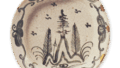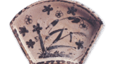 The painting has a slightly bluish tint, and is of a design that suggests it was made in the Keicho period, with its spacious brushstrokes on the rounded bottom four sides. The rounded bottom has legs on all four sides, and four large eye marks remain between the legs.