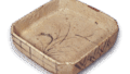 This is a rather thick, edge-bent, caressing four-sided bowl with an unusual thick band on the inner five sides. The prospect is covered with a cobblestone pattern and the inside rim is covered with a rim pattern, but the thick glaze makes the pattern indistinctly burned. The bottom has legs on three sides, and four eye marks remain.