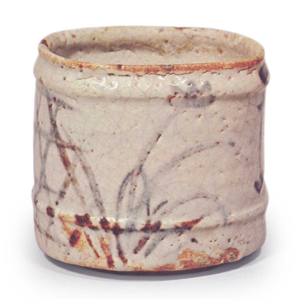 It is one of the best examples of this type of mukozuke, with its four sides decorated with basket eyes, wildflowers, a grass pattern commonly called “violet,” and a “lime” style design, and the white glaze is well finished. The stand is large and machined.