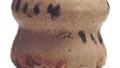 This mukozuke has the same shape as the Shino inagake mukozuke, with an arabesque design on the body and a design of a single-wheeled wheel, ashi, and cypress fence on the four sides. The bottom has legs on three sides, and there are three small marks on the prospective view.
