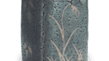 This mukozuke has the same four-way corner and goze bottom design as Shino mukozuke with a Shino tozan design, and the body is decorated with hinokaki and grass patterns on two sides. It is a typical Shino mukozuke with a straightforward pictorial design for this type of mukozuke. However, there are not many examples of this type of mukozuke in the Shino tradition, and probably only a few dozen pieces have survived. It is thought that the pieces were fired in the middle or under-kiln kilns of the Ohgaya kiln. The glaze is thin and softly melted, with reddish tints appearing everywhere.
