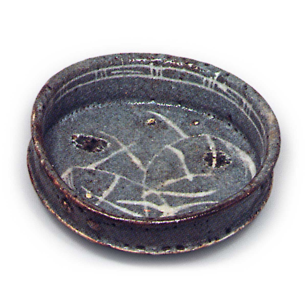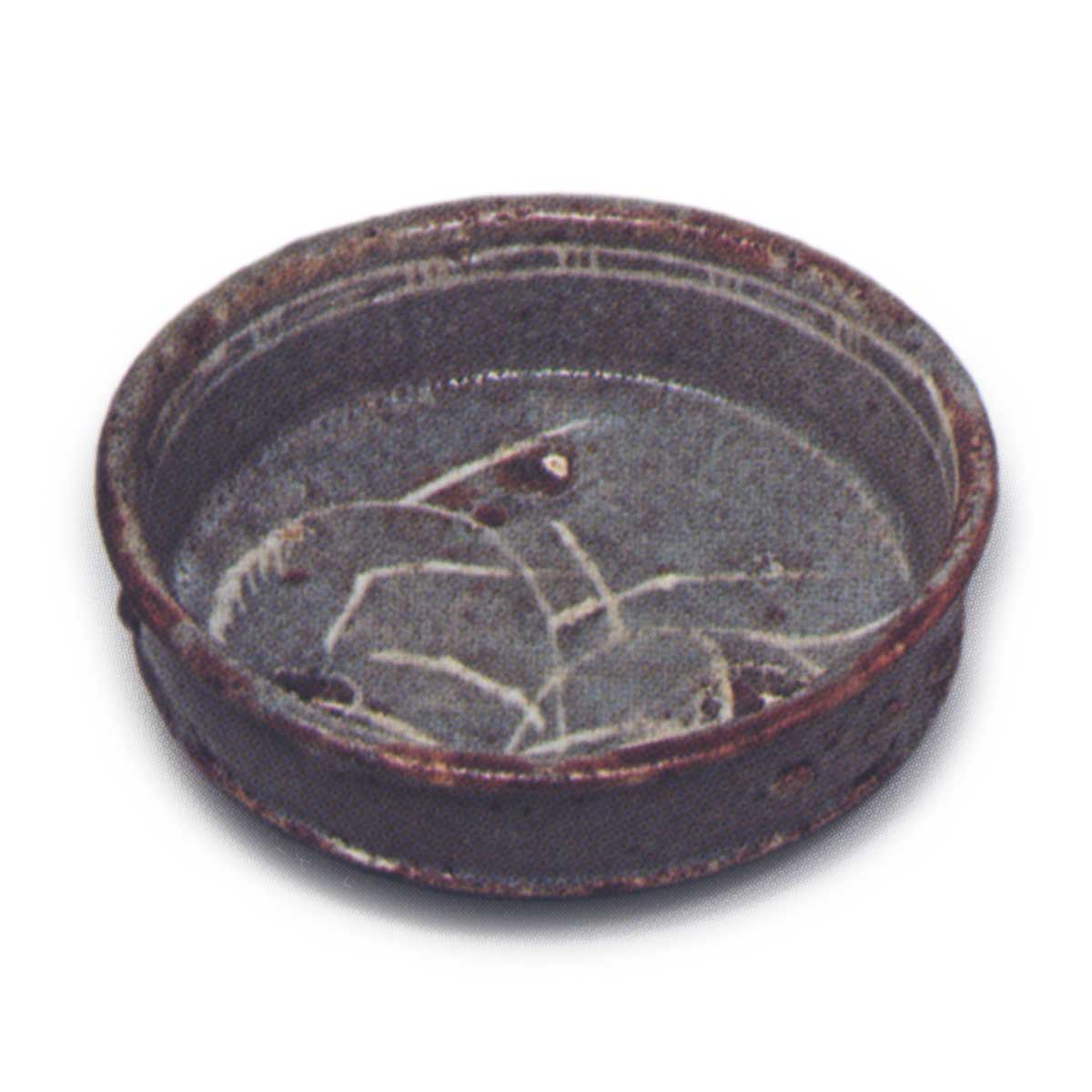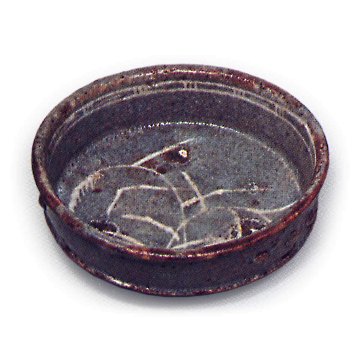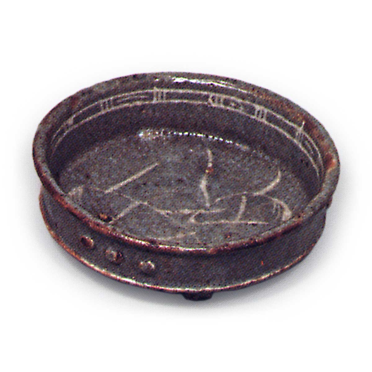 This mukozuke is a rare example of Nezumi-Shino mukozuke with a round shape and legs on three sides of the bottom. The body has legs on three sides, and the body is covered with a ground. The bottom of each piece is reddish, with the distinctive burnt look of nezumi-shino, and there are ring-shaped marks on the bottom of each piece. There are also six large and six small marks on the prospective surface.