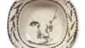 Shino mukōzuke dish with plum-tree and miscanthus design