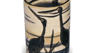This is a four-sided mukozuke with a stroked bowl with the mouth held inward. The prospective view is decorated with an unusual floral motif in bold and unrestrained brushwork, while the rim design is very simplified.