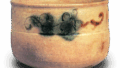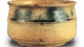 This tea bowl is highly valued as a twin of the “Namba” bowl. In Toda Rogin’s “Gogaku-shu”, there is “Kizudo tsutsu nisho ao nisho ko kizudo nouchi ichidai yuan nagata imamii”, which indicates that it was already used as a tea bowl in the early Meiji period when Rogin was active and had a high reputation. It rises in a straight line from the waist, slightly tapering to the mouth, and the rounded rim is slightly warped at the edges. The low, large high stand has been carved out, but the overall shape is thin and neat, and the single strap around the body tightens the monotonous cylindrical form. The four-petaled flower arabesque carved in lines on the body cord adds a floral touch. The yellow-seto glaze applied to the entire surface does not seem to be as thick as that of “Namba. The gallstone glaze, which was applied in abundance, flows to the hem. The gallstone runs down to the base and is truly brilliant. The expected glaze is slightly thicker than the outer one and has a deep yellow color. There is a trace of a glaze pattern in the base of the bowl, which shows a slight brownish burn around the glaze.