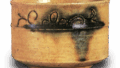This is a rather deep and thickly wheel-thrown Kizeto teacup of this type. The bottom of the bowl has a rounded, shallow cutout in the center in the Go-Zu style unique to Ki-Seto, which is often seen in mukozuke (tea bowls with a small handle). The body is covered with a thin spatula with a five-petaled flower in the center, and arabesques are carved in lines on the front and rear sides. The yellow-seto glaze of fried skin over the entire surface is slightly burnished to an austere yellow, and the area around the hem is slightly burnt, giving the bowl a deeper apologetic flavor. What is particularly impressive about the shape of the tea bowl is the plump curved surface from the bottom to the waist, which deepens the peaceful atmosphere. There is a trace of a glaze shape in the base of the bowl, and the area is burnt.