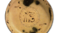 Large bowl with a wide bell-shaped rim. The rim of the ring flower is due to the deep incision. The rim of the flower ring is deeply incised, giving the bowl a gorgeous appearance. The center of the prospect is engraved with a large glazed floral motif with leaf tips spreading out in all directions, with iris leaves engraved on the inner two sides and large plum blossom arabesques on the left and right sides of the rim. The Kizeto glaze over the entire body is fired to a very dark finish. The overall appearance of the bowl is darker than usual for this type of bowl, and brown burn marks appear on the wide, low-rising base.