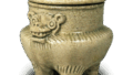 This is an incense burner in the shape of a lion. Several pieces of this type of incense burner have been handed down through the generations, but they all share the same glaze and other characteristics. It is not clear when this type of incense burner was fired, but it was probably fired in the mid to late Tensho period.