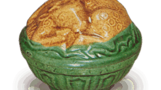 This pottery came from the Mitsui family. The coloring of the vitriol is dark and vivid. It is one of the most representative examples of this type of neda kagai. It has been handed down together with “Shino kagai” as a pair.