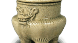 This bowl, commonly called a chrysanthemum bowl, once came in a set of five, but is now in the collection of the Hatayama Memorial Museum. The glazed surface is slightly whitish, which is ideal for Kizeto ware. Looking at a large number of Kizeto wares, this type of glaze tone seems to be rather tasteful. The glazed surface is soft, with line engraving of cherry blossoms and chrysanthemums on the prospective flanks, with gallbladder over the cherry blossoms and iron glaze over the chrysanthemums. It is mounted on a low glazed stand.