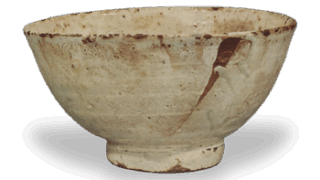 This is a simple tea bowl similar to the “Koharaki” with a taut hem, but there is almost no spatula, and it is an honestly made bowl as it was thrown on the potter’s wheel. The height of the bowl is not so low, and it is carved in a simple circular shape with a rather wide tatami mat. The tatami mat is rather wide, and there is a low width of the helmet inside the stand. The glazed surface is slightly hardened, and some parts of the glaze show an iridescent luster. The surface of the glaze is slightly hard-fired, showing an iridescent luster in some areas. There are also some kiln marks on the rim of the bowl, as if it had been pulled out.