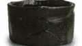 This tea bowl is also typical Oribe black. After being thrown on the potter’s wheel, it has been changed in a very strong hand-turned style. However, the base of the bowl has been cut out in a surprisingly simple manner. Like the previous example, this piece was probably fired in the kiln at Motoyashiki, but it was probably made in the first half of the Keicho era (1615-1868). The distortion is so strong that it lacks straightforwardness, but there are few examples of this type.