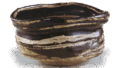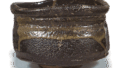 One side of the body is painted with a lintel design in iron pigments and covered with a feldspar glaze, while the other side is decorated with a cobblestone design with a circular pattern inside and a line design resembling willow branches carved on an oniita base, with a thin feldspar glaze over the design. The shape is typical of a kutsu-shape, with a “eye” pattern around the waist and on the base. The glaze is varied by using a combination of black glaze and a thin feldspar glaze over an oniita base. The mark “-” is engraved inside the base and “/” is engraved on the side of the base. The glazed surface is softly fired and full of flavor.