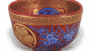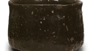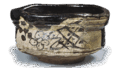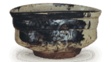 The black glaze is scraped off to reveal two trilobate patterns, and a part of the mouth area is covered with a feldspar glaze over the black glaze. The glazed surface is well melted and the bowl is of sound workmanship.