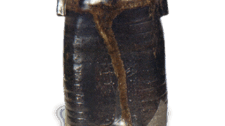 The body is decorated with a chintz-like pattern on one side and a single rounded design in scraped off black glaze on the other side, and a tortoiseshell pattern is also shown on the base. The clay is white and fine.