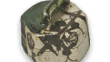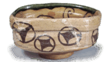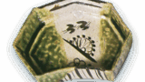 This incense container is shaped in the shape of a beach and has a rounded top with a single circular carved line on the front of the lid. The entire surface of the body and lid is covered with green glaze, except for the joints, and the glaze on the three sides of the raised shell is wiped away to produce a mottled pattern. It has a low stand and the tatami mat is made of guttural clay. The green glaze is fired to a dark and lustrous finish, making this an excellent piece among the so-called “total Oribe incense containers”.