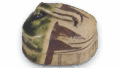 This incense container has a similar shape to the previous one with an arched hand and a ground seat at the base of the hand. One hand is covered with green glaze, and the other is decorated with a strip of paper-like pattern. Both the clay and glaze are soft, making this an excellent piece among Oribe-hajiki incense containers.