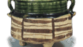 This is an incense burner with a pentagonal body, almost the same shape as Figure 113, but with the ears attached horizontally and the body covered with floral arabesques. The floral motifs in thick brush strokes and thin line drawings are painted in a very light manner.