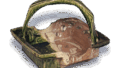 Height 16.3 cm, diameter 18.9 x 21.5 cm, four legs.