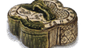 This is a large, shallow handled bowl with twisted hands. Compared to typical examples, it is probably a little dated. A low circular base has been carved out of the bottom.