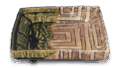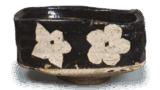 This flat bowl, shaped like a table with a corner cut on all four sides, is unusual in that it has a floral design that covers the entire surface of the bowl and a green glaze around the rim. Although we have seen two or three other examples of a similar design, we have not seen one with this type of painting. The feldspar glaze applied to the prospective surface is thick and softly fired, and the bottom has legs on all four sides and an “X” mark is engraved.