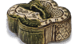 With the exception of the Oribe shiho-hirabachi, these flat bowls are oddly shaped, and there are very few examples of either type. The Oribe Matsubi Rhombus-shaped flat bowl has four legs on the bottom, and the Oribe Shiho-Heibachi has hanging persimmon and mamdo patterns on the sides and pierced legs. The Oribe hirabachi has legs on all four sides of the bottom, and the cloth pattern is clearly visible under the green glaze on the interior. The Oribe hirabachi has a very interesting design with a bird like swallow as an example. It has solid legs on three sides of the bottom. The last Oribe flat bowl is a rare one without green glaze, with chrysanthemum and round patterns on the prospective surface and arabesque and sawtooth patterns on the side. The sides are decorated with arabesques and sawtooth patterns. It is softly fired.