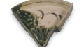 Oribe ware has few large dishes. Both of these pieces are outstanding among those we have seen in our survey and have a pleasant, bouncy flavor. In particular, Figure 174 shows a bamboo shoot in a light line, with green glaze applied on three sides in the shape of a five-petaled ring flower. The bottoms of all of these vessels have low circular bases that have been cut out in a straightforward manner.