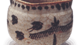 This cup was probably excavated from a burial mound in the Gosho City area. This is a large cup with a step at the junction of the legs and the cup. The “ko-mochi-taka-ceremony cup,” in which many cups are placed on a high cup, is common in Sue ware: but is extremely rare in earthenware. The arrangement of the seven vessels around the cup and two inside is similar to that of Sue ware: and it is clear that it was modeled after the Sue ware Ko-mochi-taka-ceremony cup. It was probably made as a burial accessory for a burial mound.
