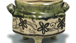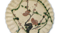 This is one of the finest Yashida Oribe framed dishes. The design of ashi and vine grasses, similar to that of E-Taratsu, is truly masterful. The white glaze is smoothly melted.