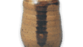 This is the only known example of a painted karatsu tea caddy with a shoulder-jointed shape. The shape is clearly modeled after the Seto tea caddy, and it was probably made around the Bunroku or Keicho period.