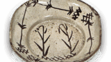 This sake cup with a plucked mouth in the shape of a ringed flower has an aloof appearance. The thickly glazed surface is softly fired, and the red clay around the base is also soft. The red clay seen around the base is also soft.