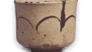 This tea bowl is called Nakao Karatsu. It is said to have belonged to Korekan Nakao, but it is not clear why the names Nakao and Korekan were separated. Nakao karatsu is more oxidized and has a loquat-colored skin than Korekan karatsu “Sanpo,” but the basic style is the same. The middle one has a more rustic appearance because it does not have a step at the waist. The thick base is low and large, and the glazed surface on the inner surface and around the outer rim has rough penetrations, and there are traces of glazed fingers touching the sides of the base with glaze, and the glaze has flaked in two places. The shallowly pitted interior is thickly glazed and shriveled in the shape of a plum blossom peel, and three eye marks remain. The Nezu Museum also has a tea bowl known as Nakaotsu, but the workmanship is quite different. The relationship between this type of karatsu bowl and Korehann Nakao is not clear. This type of Karatsu tea bowl and Korekan Karatsu came to the Konoike family in Osaka, Japan.