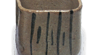 This is a small, tight, and brownish bowl with a deep rise. The base is carved in the shape of a bamboo joint, and the width of the helmet stands within the base. The glazed surface is softly loquat-colored, with white unevenness appearing here and there, and a gentle plum blossom skin from the base to the hips. It was once a favorite of Masuda Bunko.