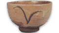 This is a rather large tea bowl, and judging from its simple appearance, it seems to be an early example of painted Karatsu tea bowls. The base is carved out to be small and the tatami mat is thin. The soft reddish clay skin is painted with a pale and dark grass-like pattern on three sides of the body in iron paint, and the entire surface is glazed except for the area around the base, but there are white glaze drips around the base and white glaze pools in the prospective area. Although this is a medieval piece, the rim of the mouth is heavily damaged and has been repaired.