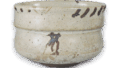 It is not known whether it was born as a tea bowl or a mukozuke, but it is now used as a tea bowl. It is a slightly overhanging cylindrical bowl with iron glaze around the mouth and two fishermen, a bridge, and an ash, etc. painted on the body, and glazed inside and out. The glazed surface is softly burned, and the tatami mats on the base are thinned to one side, so it is probably made by Uchida Saraya or Jiaya’s Tani Kiln.