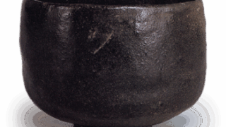 This is a tea bowl similar to Kurooribe, one of the Kutsukatagata tea bowls. The mouth is thick, the body is tightened, and the low base is carved out of a wide tatami mat to create a double height style. The mouth is covered with iron pigments and six flying birds are painted on the flat surface. The glaze on the interior and exterior is quite thick, with small and large penetrations, and the glaze is softly baked. The base of the bowl shows a fine clay skin with high iron content, and the mark “ー” is engraved inside the base and the mark “×” is engraved on the side of the base, which is also often seen on black Oribe tea bowls.