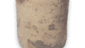 This is a cylindrical tea bowl similar in style to “Nenoko Mochi”. The base is cut out straight and the inside of the bowl is shallow. The glaze, which is applied over the entire surface up to the base, is loquat-colored, with some of the thicker glazed areas turning white, and the area from the waist down is slightly darkened. Finger marks on the bottom of the base are visible.