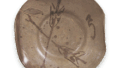 The four corners of this circular dish are slightly raised, and the four corners are picked out to form a stroked square shape. There are two other plates that were probably once made in a set of five. Two other pieces have been found. A similar piece was excavated from the Ichiwakayashiki kiln located across the street from the Joriya-no-Tani kiln.
