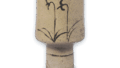 This is a high legged sake cup stand, probably made as a tenmoku-dai. It is decorated with chrysanthemum and Asuka motifs in the prospective area and with Ashi motifs on the legs. The bottom has been incapacitatingly cut away to show the earth. There is no other similar example. It must have been made by the Tani Kiln of the following shop.