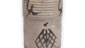 This mukozuke has a stepped waist, a slightly open mouth, and a three-sided barrel with a clearly expressed design of a glauber’s peak on the body. The glazed surface is well finished, and this is one of the outstanding examples among E-Taratsu mukozuke. It is probably made by the Koraishin Kiln in Ichinose. There are five pieces in this set.