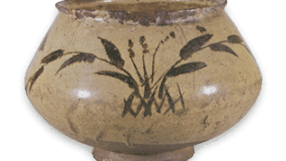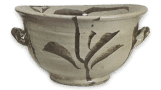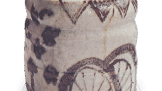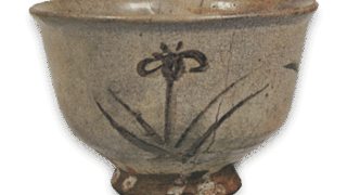 This is also thought to have been made by Uchida Saraya Kiln. The waist is rounded and the mouth is shaped in a stroke of a square, and paintings of swallow, willow, arrowhead, grass and flowers are painted on the four sides of the body with soft strokes.
