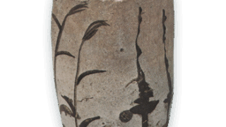 Both pieces are influenced by Shino ware, and are thought to have been made by the Aobodani kiln. The body of both pieces is decorated with a spacious brushwork with patterns such as yotsumegaki, yari-tip, and yokosuji, but it is interesting that Figure 175 shows a cedar leaf-like pattern on one side. These are also large for tsutsu mukozuke, and are used for hibiya because of their excellent workmanship.